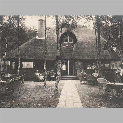 Een van de twee horecagelegenheden die op een steenworpafstand van elkaar stonden. Dit gebouwtje brandde in 1938 helaas af.